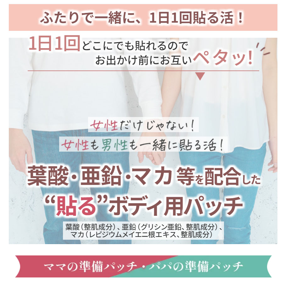 - 女性向け≪ ママの準備パッチ ≫で2人で妊活!